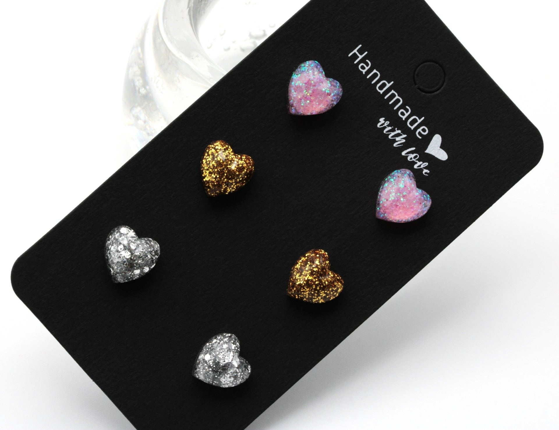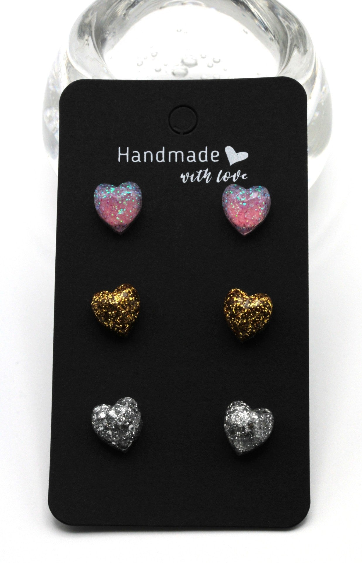 Ihania sydämisiä nappikorvakoruja niin arkeen kuin juhlaankin💖Kolme kaunista sävyä: baby pink (ylin), kulta (keskimmäiset) ja hopea (alin).