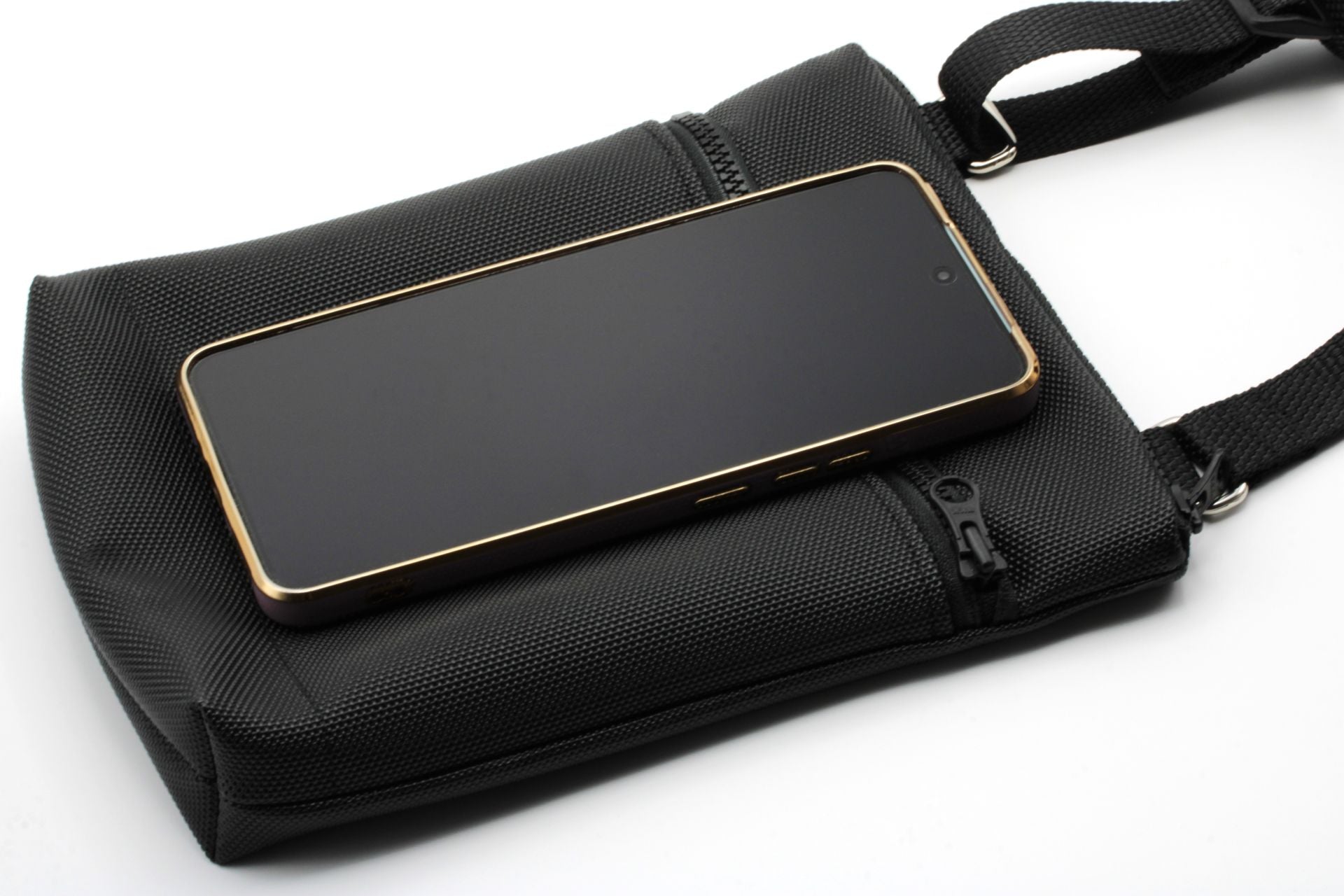 Kännykkälaukun kangas erittäin hyvälaatuista "nupukuvioitua" keinonahkaa (Saksasta). Vuorikangas pinnoitettua polyesteriä.
