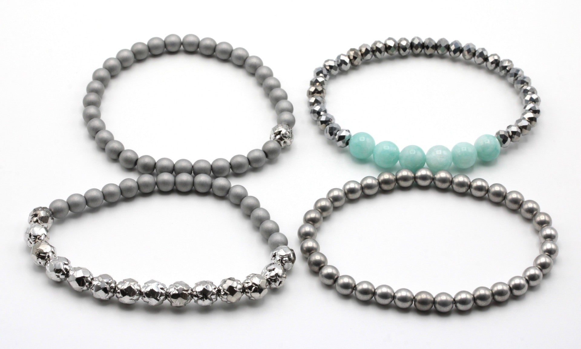 Helmivarastojen kätköistä ihania rannekoruja edulliseen settihintaan🩶 Olen tehnyt korut täydentämään toisiaan.